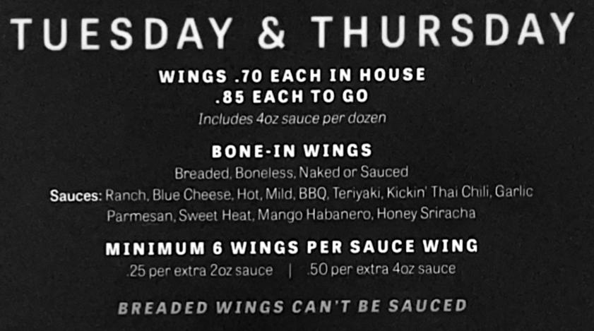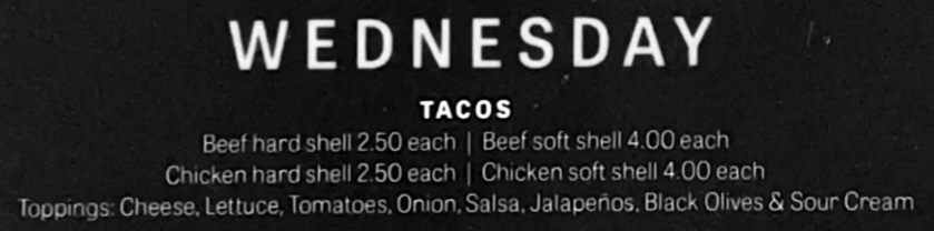 Our Specials * Our Specials * Our Specials * Join Us for Happy Hour Monday thru Friday - 3pm to 5pm $1.00 off drinks(Exclusions Apply) Weekly Specials